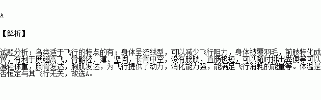 同学们在探究鸟类适于飞行的特点时,提出下列看法,你认为错误的是( )