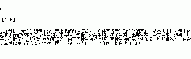 无性生殖原理被广泛的应用于生产实践中,这是因为无性生殖能