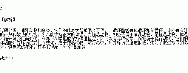 D.蛇的身体小,不耐冷;兔子身体大,耐冷