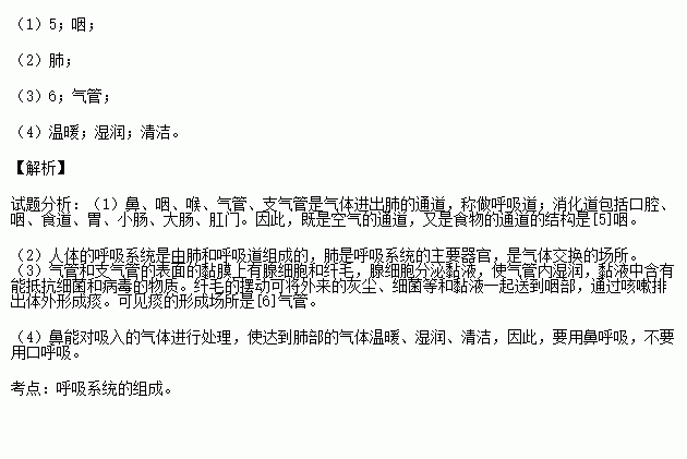 (4)用鼻呼吸比用口呼吸更卫生,是因为鼻腔可可以使吸入的 进入的气体 、 、 。