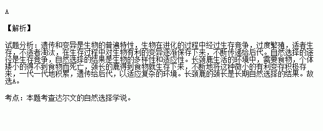按照达尔文生物进化理论的解说,长颈鹿的长颈性状形成的原因是( )