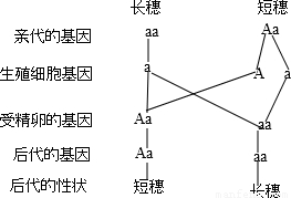 可见,无论是AA还是Aa与长穗水稻aa杂交,其后代短穗水稻的基因组成都是Aa.