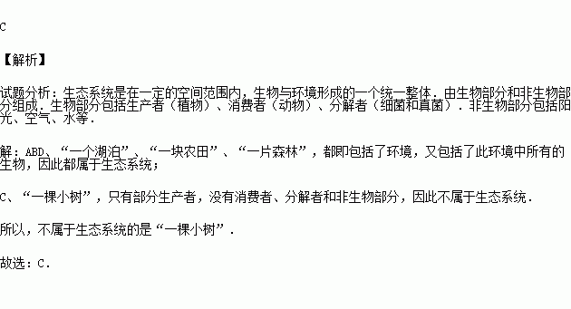 在一片森林中,有土壤、水分、阳光、空气,生活着各种植物、动物、微生物,它们共同组成 ( )