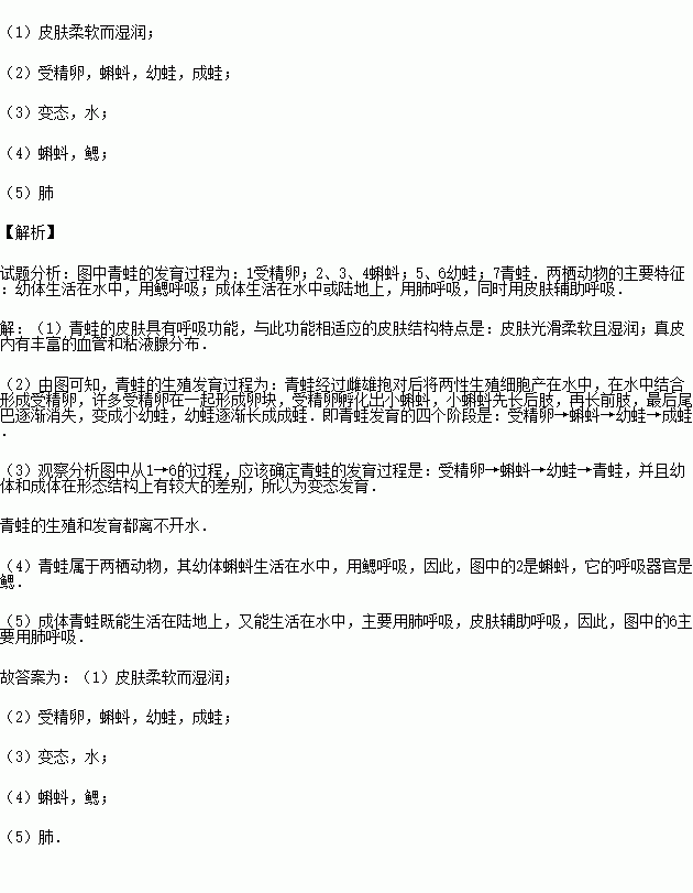 (3)观察分析图中从1→6的过程,应该确定青蛙的发育属于 发育.生殖和发育需要在 中进行.