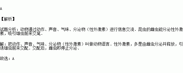 A.雌虫分泌的是性外激素 B.雌雄虫交尾是无性生殖