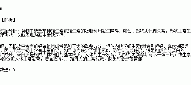 (2005•德州)牛奶中含有丰富的钙,但幼儿只喝牛奶体内也会缺钙,可能原因是缺少( )