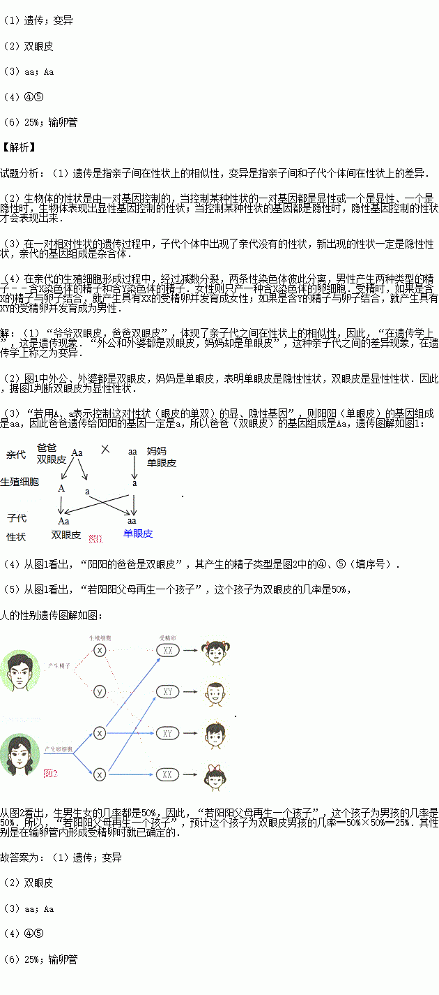 £¨1£©Ò¯Ò¯Ë«ÑÛÆ¤£¬°Ö°ÖË«ÑÛÆ¤£¬ÔÚÒÅ´«Ñ§ÉÏ£¬ÕâÊÇ ÏÖÏó£®Í⹫ºÍÍâÆÅ¶¼ÊÇË«ÑÛÆ¤£¬ÂèÂèÈ´Êǵ¥ÑÛÆ¤£¬ÕâÖÖÇ××Ó´úÖ®¼äµÄ²îÒìÏÖÏóÔÚÒÅ´«Ñ§ÉϳÆÖ®Îª £®
