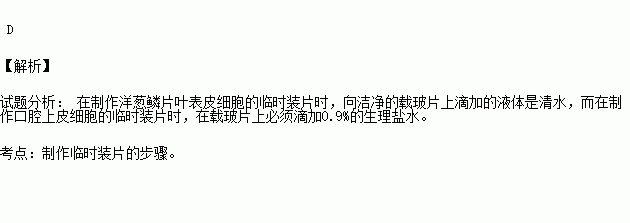 在制作洋葱表皮细胞和人口腔上皮细胞的临时装片时,在载玻片中央所滴加的液体分别是( )