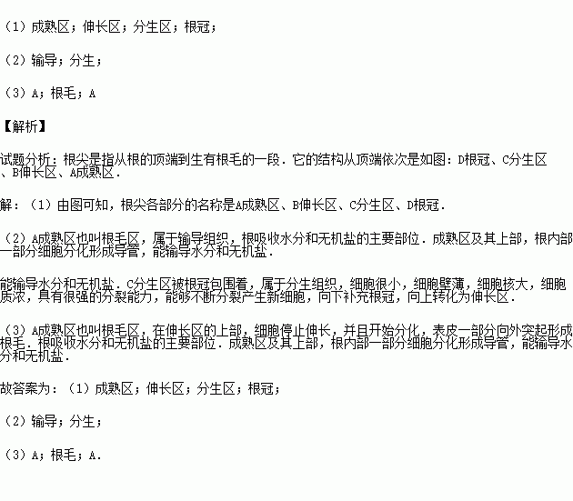 如图是根尖结构示意图,请填写出各结构的名称,并回答问题(在[]中填编号)