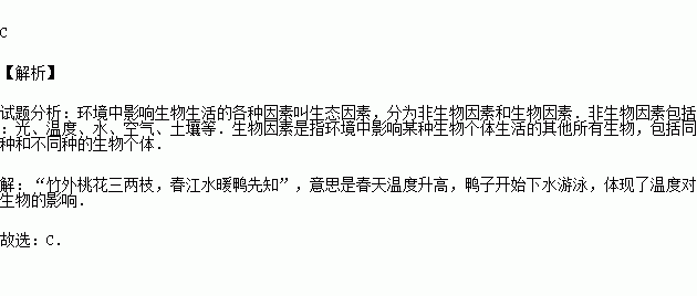 (2015秋•吴忠校级期末)“竹外桃花三两枝,春江水暖鸭先知”这描述的是哪一种非生物因素对生物分布的影响( )