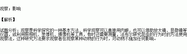 研究动物行为的方法主要有两种,法国昆虫学家法布尔对昆虫的研究属于________ 法,这种方法要求观察者在观察某种动物行为时,对动物不施加任何________。