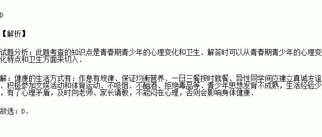 (2009•苏州)当我们进入青春期后,由于生理的变化,心理也会发生明显的变化.下列关于处于青春期青少年做法与想法的叙述中,不正确的是( )