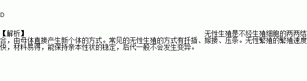 下图是植物无性生殖的几种方法,在图下的横线上填上生殖方法的名称并举例。