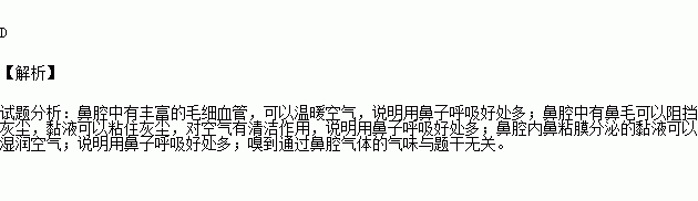 坚持用鼻子呼吸对人体有好处。下列说法不确切的是( )