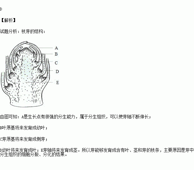 芽能够发育成含有叶、茎和芽的枝条,主要原因是( )