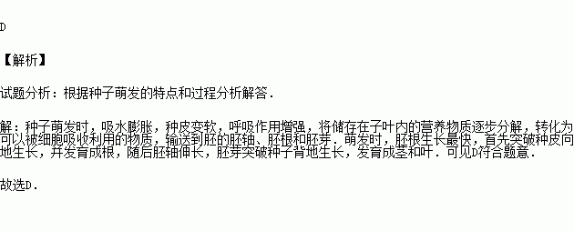 D.胚芽先突破种皮,发育成茎和叶