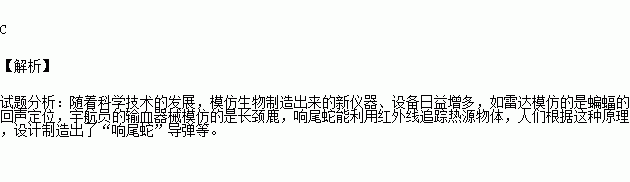根据响尾蛇能利用红外线追踪热源物体的原理,工程师设计并制造出了“响尾蛇”导弹。这种技术属于( )