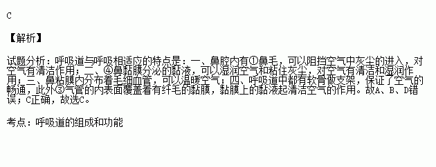 人体呼吸道具有净化空气的作用。下列能使吸入的气体变清洁的结构有