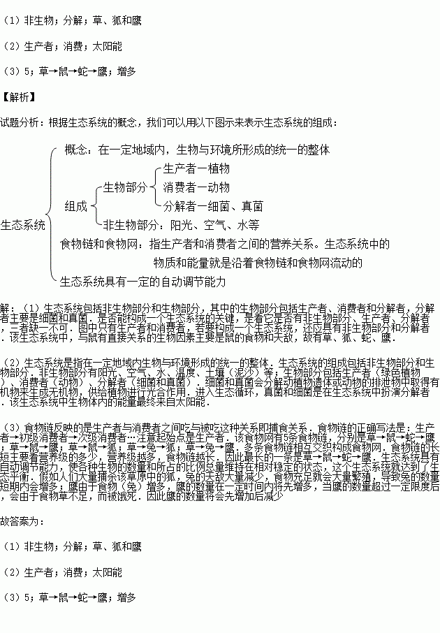 £¨2£©ÔÚ¸ÃÉú̬ϵͳÖÖ£¬²ÝÊÇÉú̬ϵͳÖÐµÄ £¬ºüºÍÍÃÊÇÉú̬ϵͳÖÐµÄ £¬¸ÃÉú̬ϵͳÖÐÉúÎïÌåÄÚµÄÄÜÁ¿×îÖÕÀ´×Ô £®