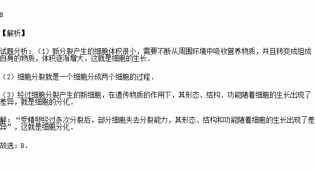 受精卵经过多次分裂后,部分细胞失去分裂能力,其形态、结构和功能随着细胞的生长出现了差异,这就是( )