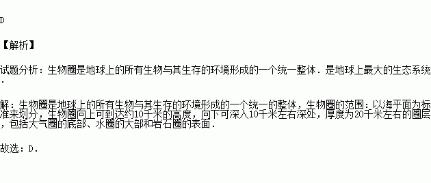D.岩石圈的表面、大气圈的底部、水圈的大部分