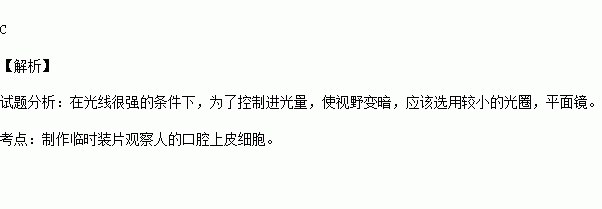 用显微镜观察人的口腔上皮细胞临时装片时,若光线很强,应选用的光圈和反光镜依次是