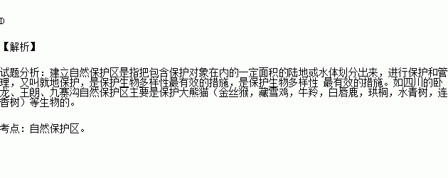 A.就地保护 B.易地保护 C.保护基因 D.保护濒危物种