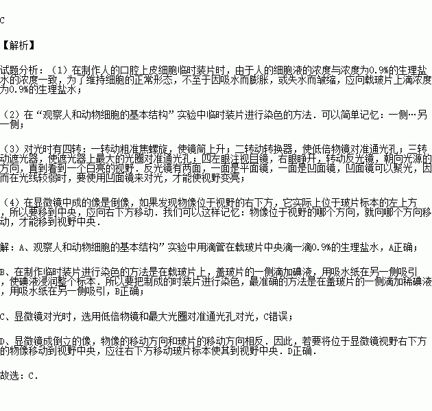 在“观察人和动物细胞的基本结构”实验中,下列操作错误的是( )