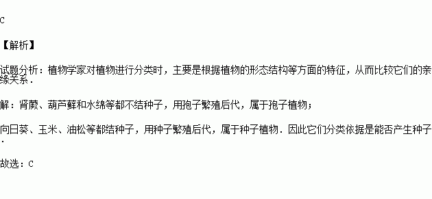 某生物兴趣小组的同学在进行野外考察时,采回植物标本后拍摄了照片(如图所示),他们将肾蕨、葫芦藓和水绵分成一类,油松、向日葵和玉米分成一类.其分类依据是( )