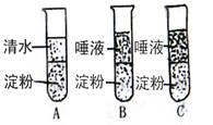 (1)A、B、C三支试管中分别加入淀粉糊2毫升,再向A中加入2毫升清水,向B和C中各加入2毫升唾液,再向C中滴入稀碘液,C试管中出现的现象是 。