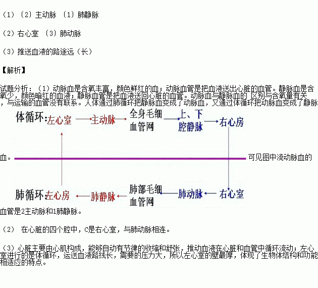 (2)图中与C 相连的血管是[ ]