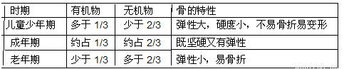 在不同时期,骨的成分不同,如下表: