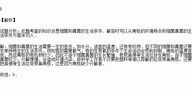 为了保护南极的生态环境,到南极考察的科学工作者不仅要把塑料等难以降解的垃圾带离南极,还要把粪便等生活垃圾带离南极,这是因为南极( )