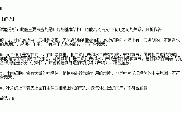 下列有关叶片结构与光合作用之间关系的叙述不正确的一项是( )