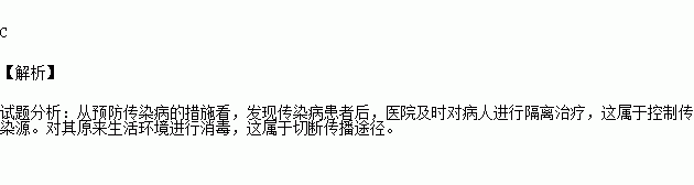 H7N9型禽流感是由流感病毒引起的一种急性呼吸道传染病.发现传染病患者后,医院及时对病人进行隔离治疗,对其原来生活环境进行消毒,这两项措施分别属于( )