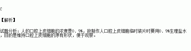 A.清水 B.碘液 C.生理盐水 D.浓盐水