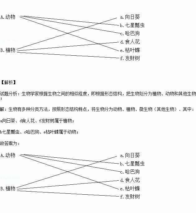 根据你的调查,下列哪组的归类是正确的( )