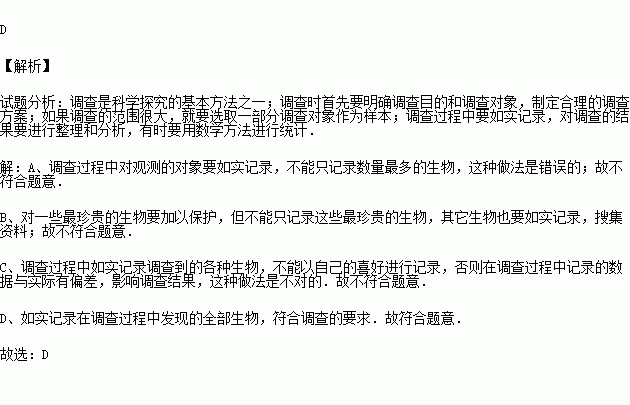 C.记录自己最喜欢的生物 D.记录看到的全部生物