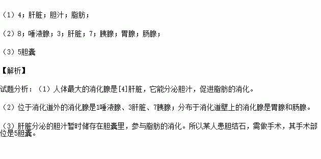 (3)某人患胆结石,需做手术,其手术部位是[ ]______。