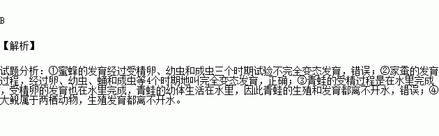 ③青蛙的生殖过程在水中进行,发育过程在陆地上进行