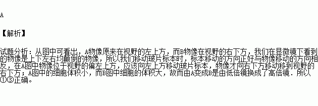下图为某同学在显微镜下观察到的细胞图像,仔细观察并分析:从像A变成像B是做了怎样的处理?( )