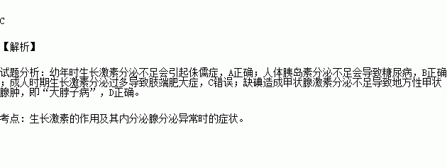 A.幼年时期缺乏生长激素导致侏儒症