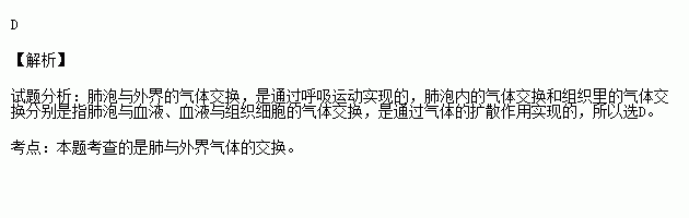肺泡与外界的气体交换是通过 来实现的,肺泡与其周围毛细血管的气体交换是通过 来实现的( )