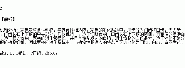 (5)②兔子其牙齿有门齿和 之分,与其草食性相适应。