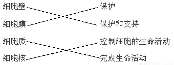 连线题,将下列细胞结构与功能用线连接起来(4分)。