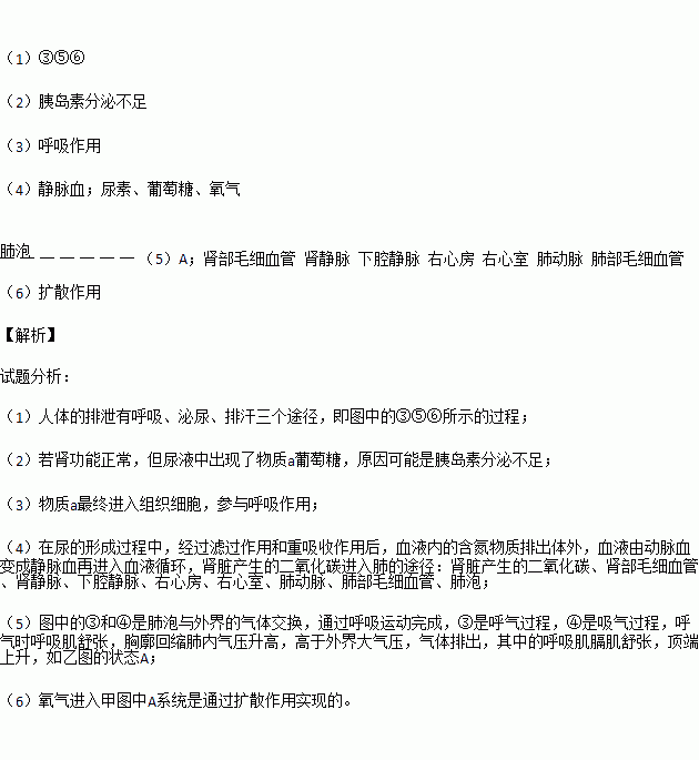 (1)图甲①~⑦中表示排泄途径的是________________(填图中序号)。