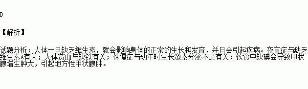 C.侏儒症与缺甲状腺激素有关 D.地方性甲状腺肿与缺碘有关