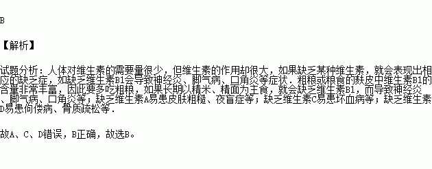 A.含维生素A较多的食物 B.含维生素B1较多的食物