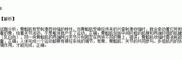 D.一个运动的完成需要多块骨骼肌的协调配合