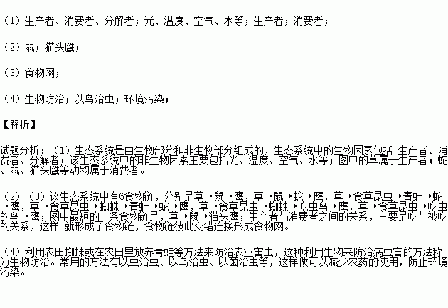 £¨1£©Éú̬ϵͳÖеÄÉúÎïÒòËØ°üÀ¨ £»¸ÃÉú̬ϵͳÖеķÇÉúÎïÒòËØÖ÷Òª°üÀ¨ ¡£Í¼ÖеIJÝÊôÓÚ £¬Éß¡¢Êó¡¢Ã¨Í·Ó¥µÈ¶¯ÎïÊôÓÚ ¡£